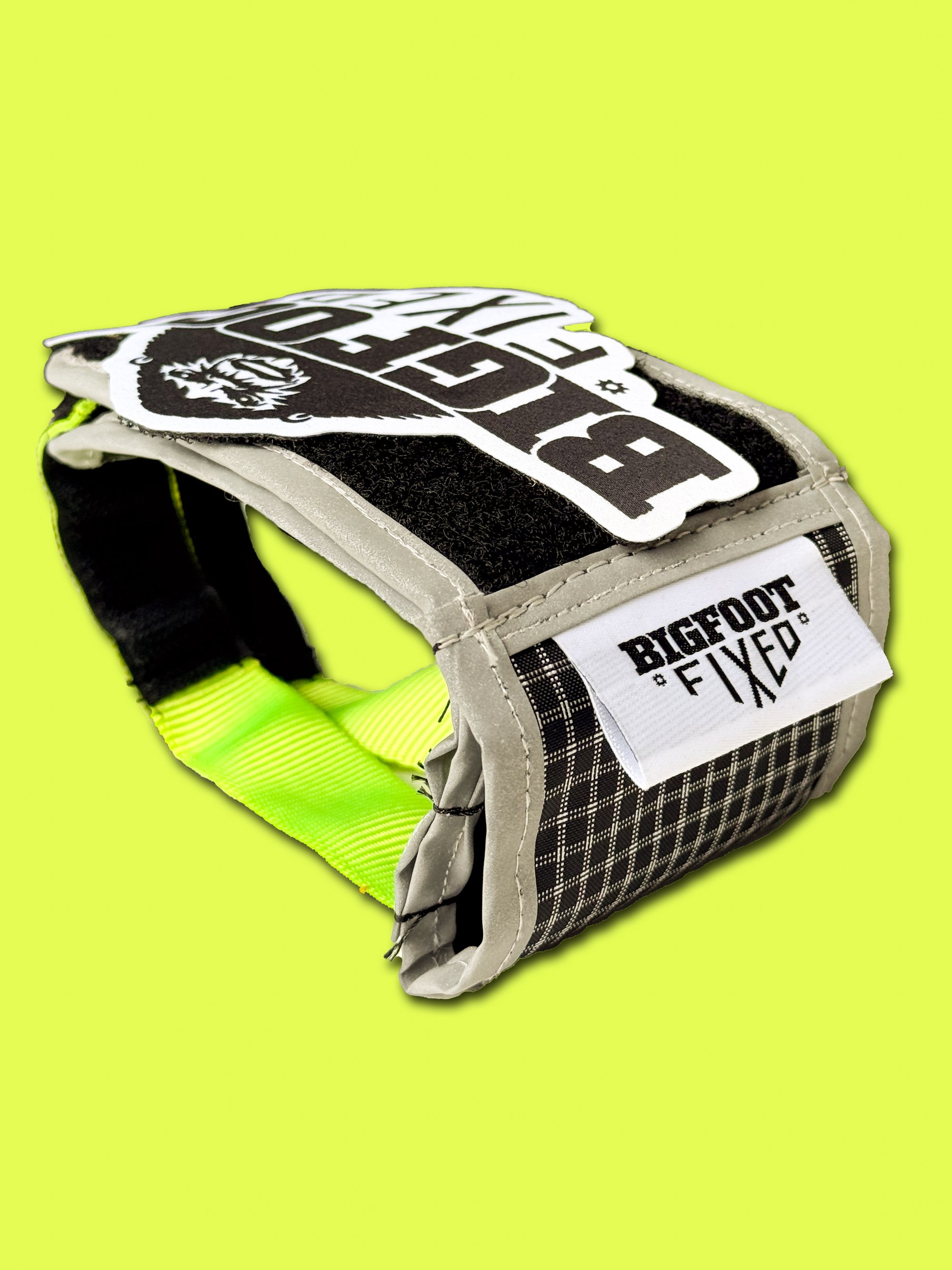 Highly anticipated next iteration of the best strap design fixed gear freestyle has ever seen. With reflective binding and the classic high visibility webbing lacing through the pedal, the next version is still very customizable with the Velcro top part to enable you to put your own patches on. Built in Oakland California, the home of the "Scraper" you will be protected from the wear and tear on the laces to ensure this pedal strap is the longest lasting and most comfortable and escapable one you'll ever need.
